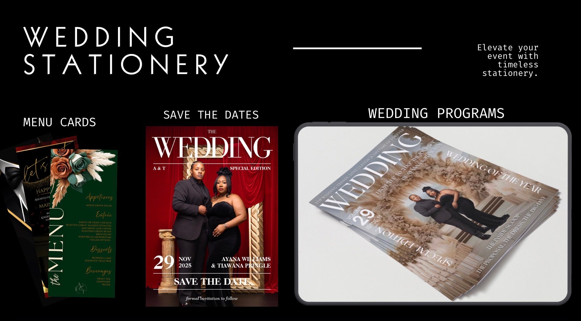 Our custom event stationery is thoughtfully designed to reflect your unique vision and elevate every detail of your celebration. From invitations to menus and signage, we create cohesive, luxury paper pieces that leave a lasting impression.
